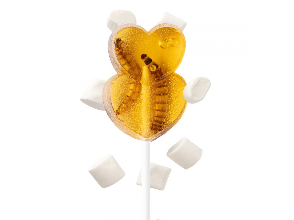 Vtipné HMYZÁTKO je ideálním dárkem pro zlobivé děti. Sušená larva Zophobase je zalitá v karamelu a vypadá jako z Jurského parku.