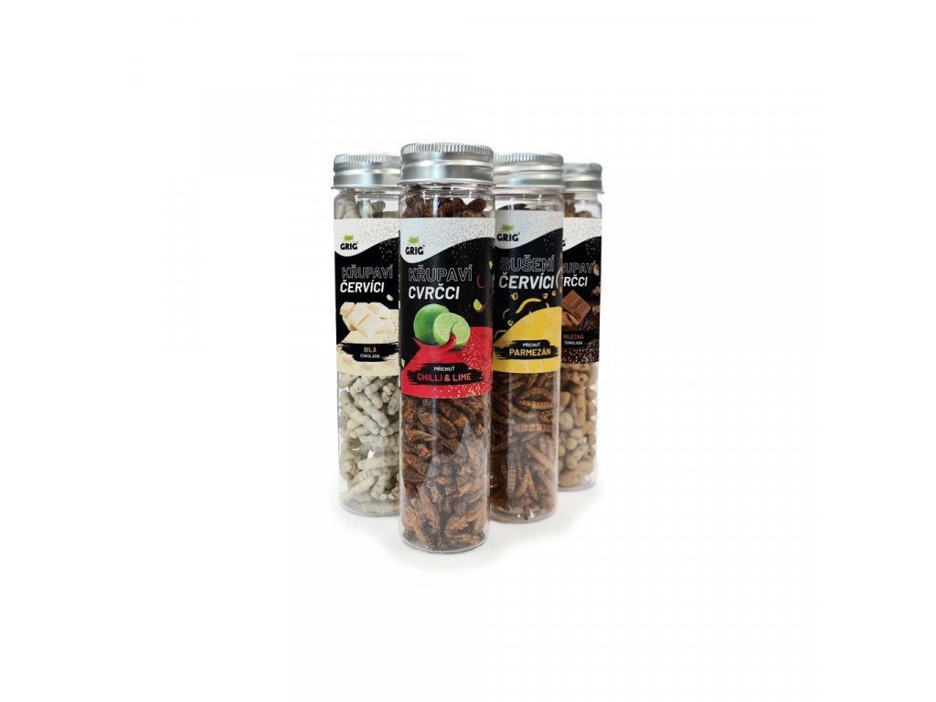 Česká značka Grig, výrobce hmyzích pochoutek, se specializuje na vytváření lahodných jedlých hmyzích produktů. Své cvrččí chipsy, trojhránky a další delikatesy z hmyzu vyrábí z hmyzu z partnerské hmyzí farmy v Litvě, což mu umožňuje kontrolovat kvalitu a čerstvost nabízených produktů.